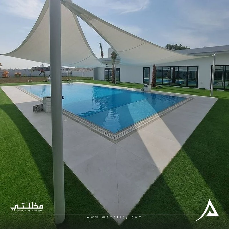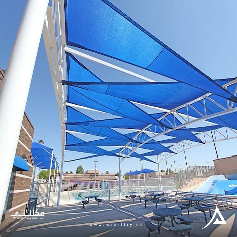 - تظليل المسابح المفتوحة: منع سقوط الأوساخ والأتربة، وتقليل حرارة المياه في الصيف.