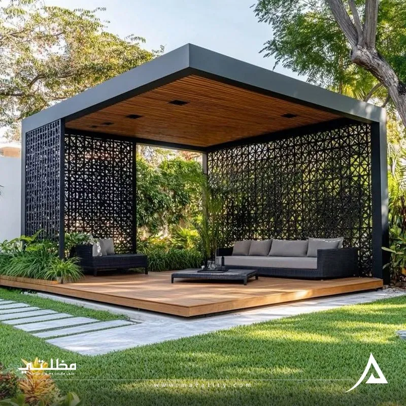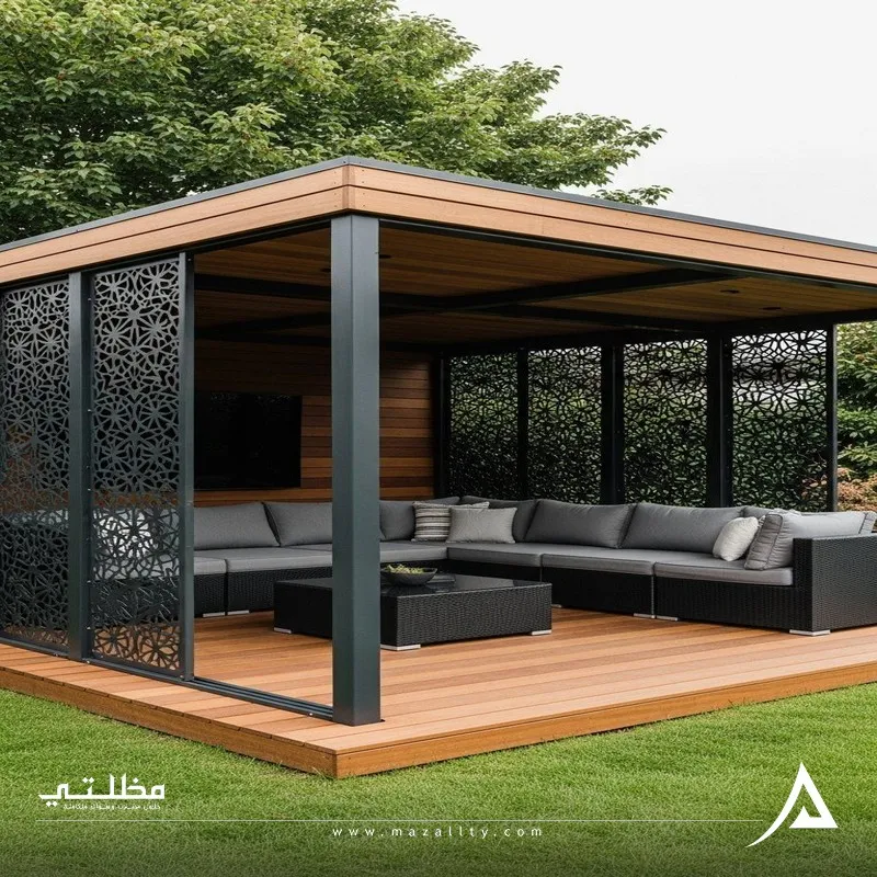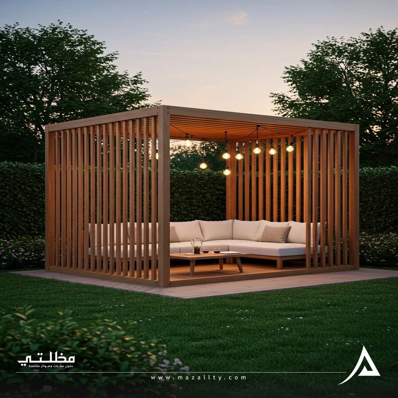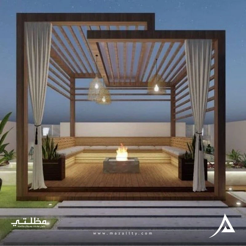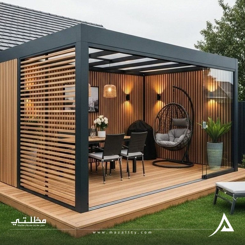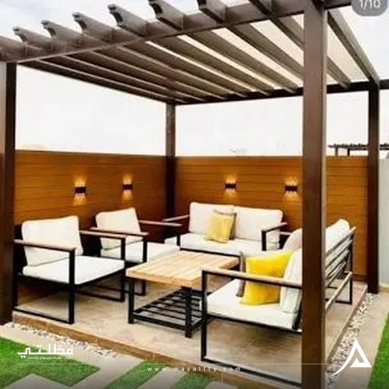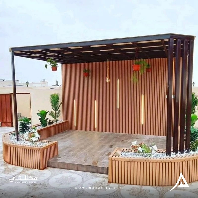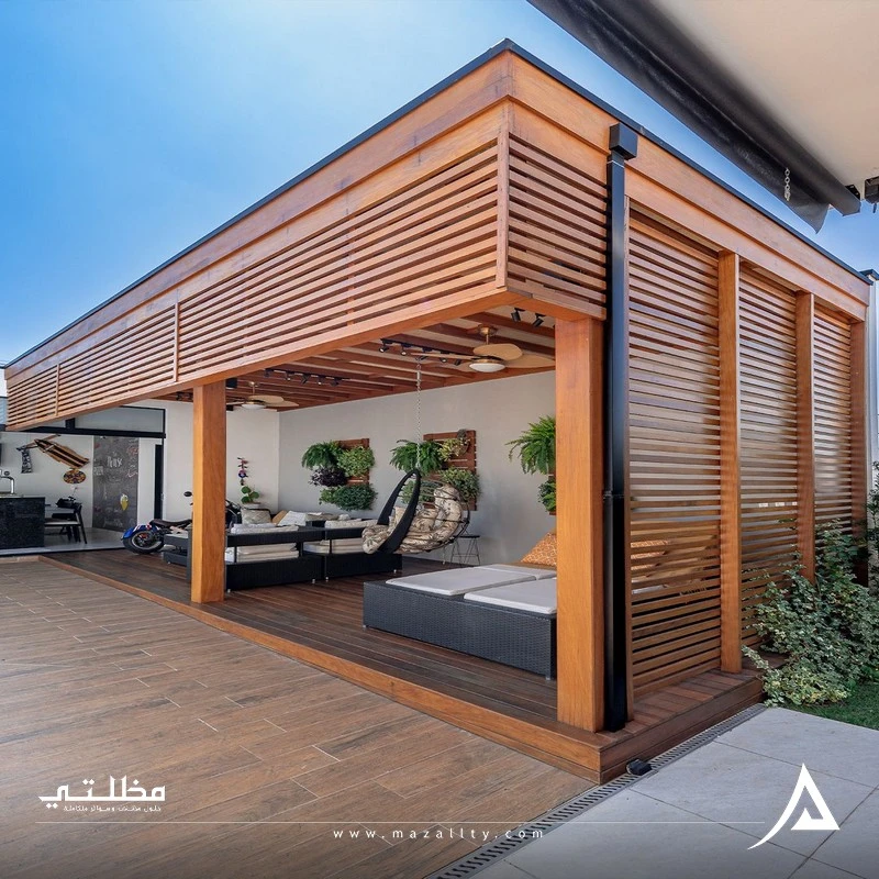 - مفتوحة (شرائح خشب متباعدة): تعطي لعبة الضوء والظل الطبيعي. أيضا مناسبة للجلسات الشتوية ولمحبي التهوية.